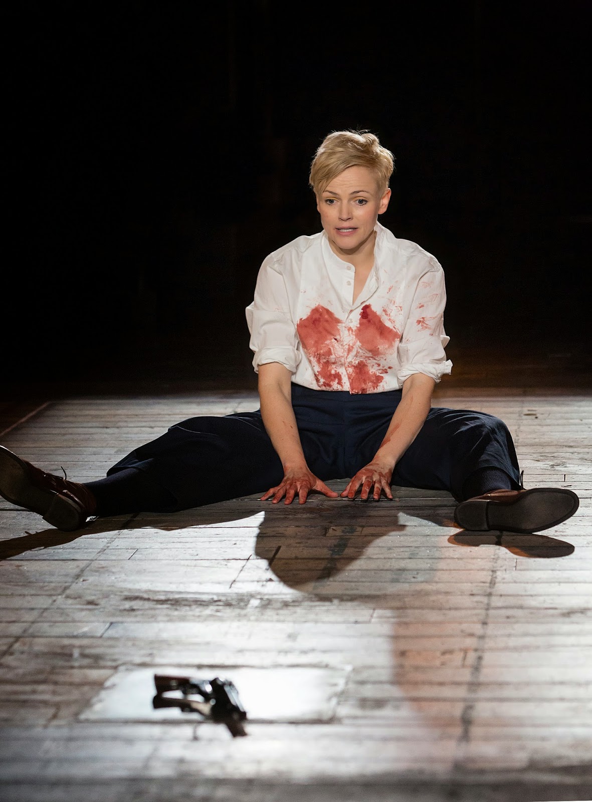 This production boldly offers two and a bit hours of intense action before the interval. As we wandered out, a little dazed, for a breather, I was thinking that this was easily the most gripping Hamlet  I had ever seen, and then realised that, actually, this was the most gripping piece of theatre I had ever seen, full stop. Peake is magnificent from her first encounter with the ghost to “the rest is silence.” The energy and the intensity never let up for a moment, and, surrounded by a talented cast, Peake made you forget that she was a woman almost from the moment she appeared, in a Mao suit and a white shirt that remained her costume throughout.